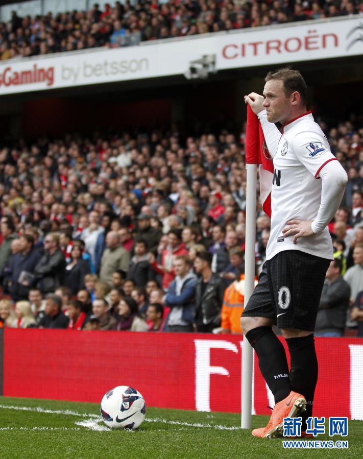 这是2013年4月28日,曼联队球员鲁尼在2012-2013赛季英超联赛第35轮与阿森纳队的比赛中等待开角球。 新华社记者 王丽莉 摄
