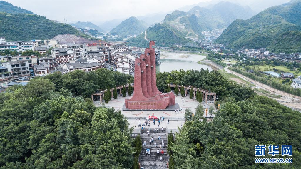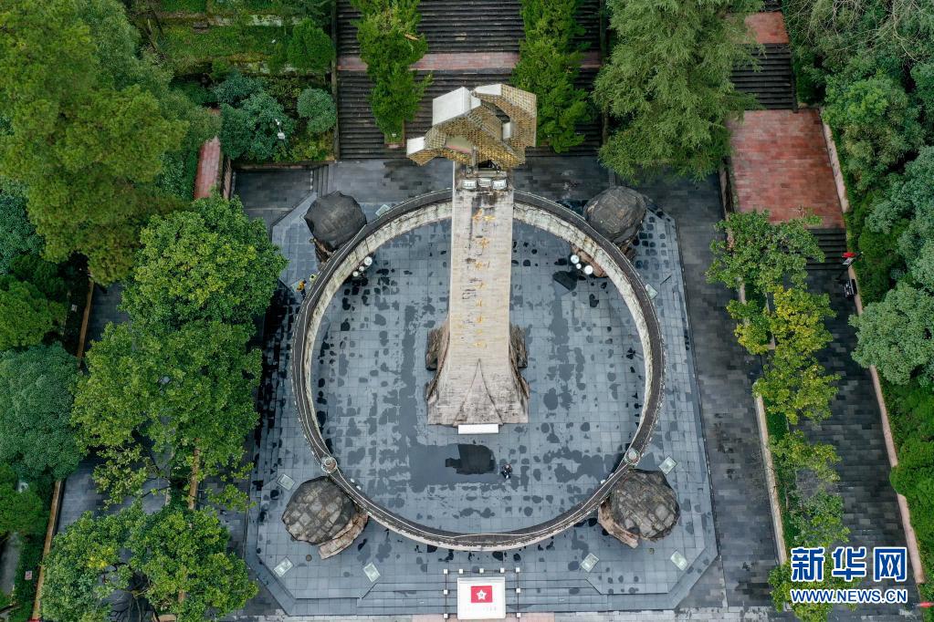 游客在仁怀市红军四渡赤水纪念园参观(2019年7月5日摄,无人机照片)。新华社记者 陶亮 摄