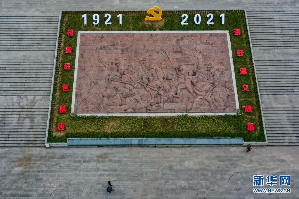 参观者进入位于贵州省遵义市习水县土城镇的四渡赤水纪念馆(2021年4月22日摄,无人机照片)。新华社记者 欧东衢 摄