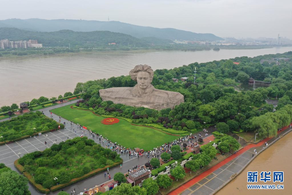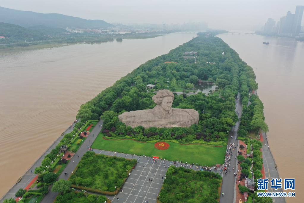 5月25日,游人在橘子洲景区参观游览(无人机照片)。 5月25日,湖南长沙橘子洲景区在湘江水位下降后,经过清淤清洗,恢复对外开放。此前,橘子洲景区由于湘江水位上涨紧急闭园。 新华社发(刘振军 摄)