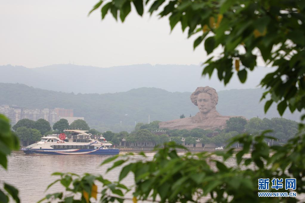 5月25日,一艘游船驶过橘子洲景区。 5月25日,湖南长沙橘子洲景区在湘江水位下降后,经过清淤清洗,恢复对外开放。此前,橘子洲景区由于湘江水位上涨紧急闭园。 新华社发(刘振军 摄)