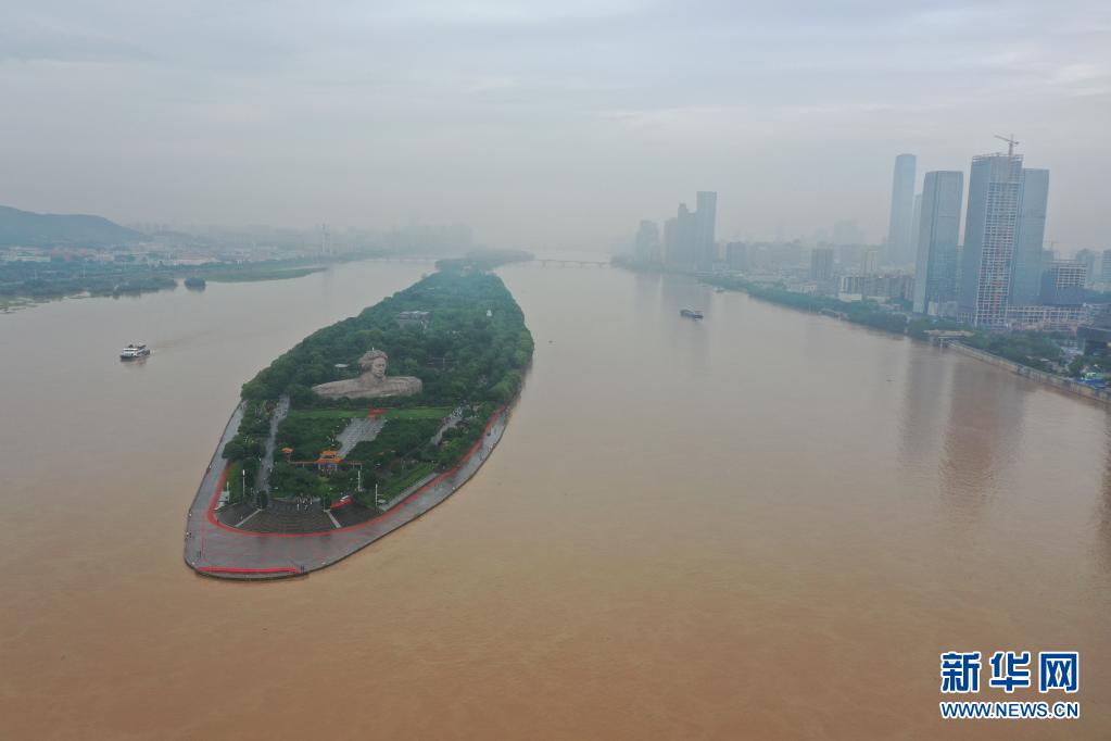 这是恢复开放的橘子洲景区(5月25日摄,无人机照片)。 5月25日,湖南长沙橘子洲景区在湘江水位下降后,经过清淤清洗,恢复对外开放。此前,橘子洲景区由于湘江水位上涨紧急闭园。 新华社发(刘振军 摄)