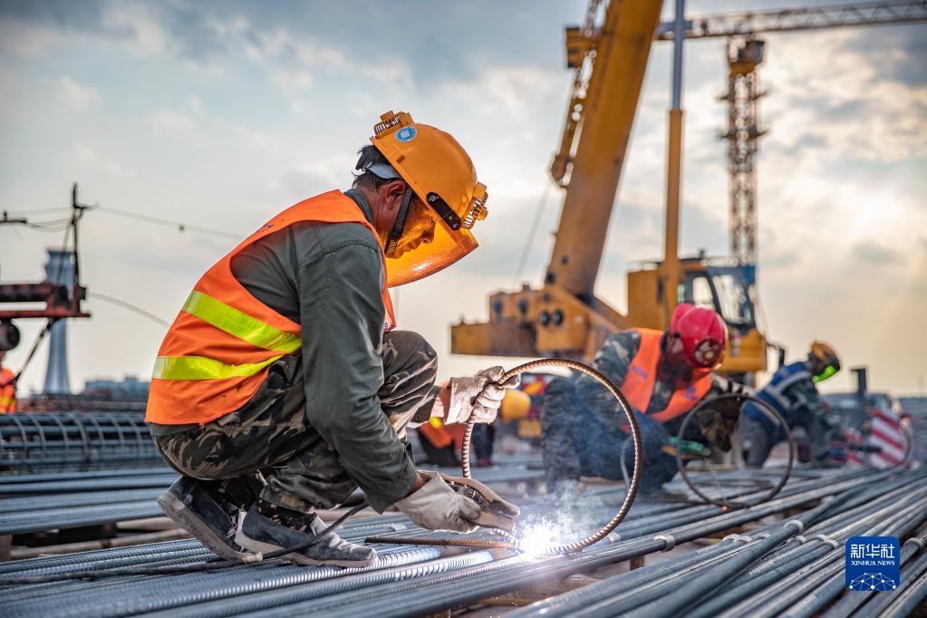 10月4日,施工人员在重庆江北国际机场T3B项目上进行钢筋焊接作业。 截至目前,由中建八局承建的重庆江北国际机场T3B项目已进入主体施工阶段。连日来,1000余名建设者放弃国庆休息时间,在工地上度佳节、战高温、赶进度,奋战在项目建设一线。 新华社记者 黄伟 摄