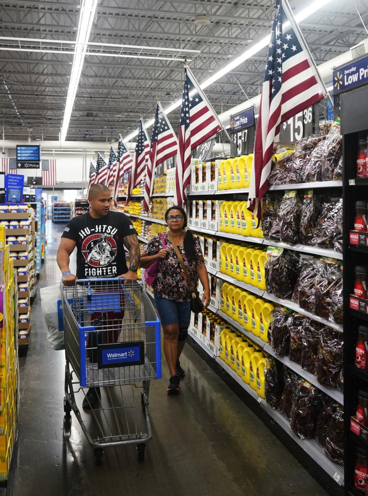 5月21日,顾客在美国加利福尼亚州旧金山湾区圣莱安德罗的一家沃尔玛超市购物。新华社记者 吴晓凌 摄