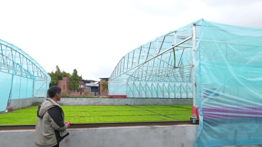 在昆明市晋宁区康云农机农民专业合作社育秧基地,自动化育秧生产线高效运转。装盘、喷淋、播种、覆土等工序有序衔接,推动育秧生产由传统人工向机械化、自动化转变。
