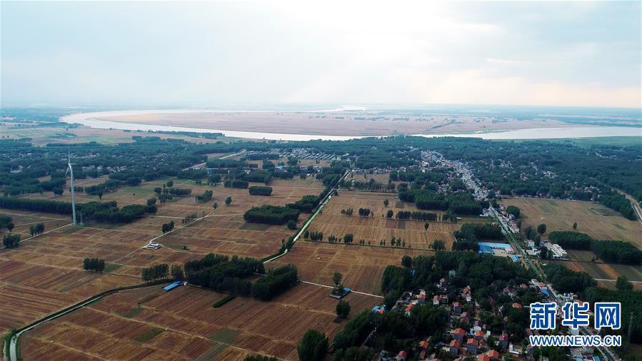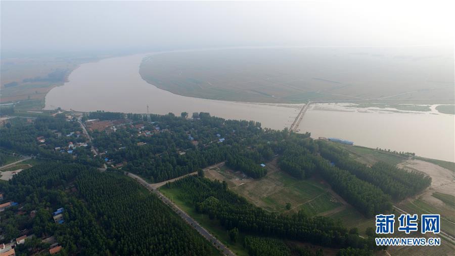 这是2018年6月19日在河南兰考东坝头乡张庄村附近拍摄的蜿蜒的黄河河道(无人机拍摄)。新华社记者 冯大鹏 摄
