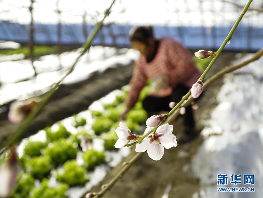 1月15日,遵化市西三里乡北港村农民在李子树大棚内劳作。 寒冬时节,河北省遵化市西三里乡北港村的设施大棚里春意浓浓,桃花、李子花盛开,农民忙着进行各项管护工作。 新华社发(刘满仓 摄)