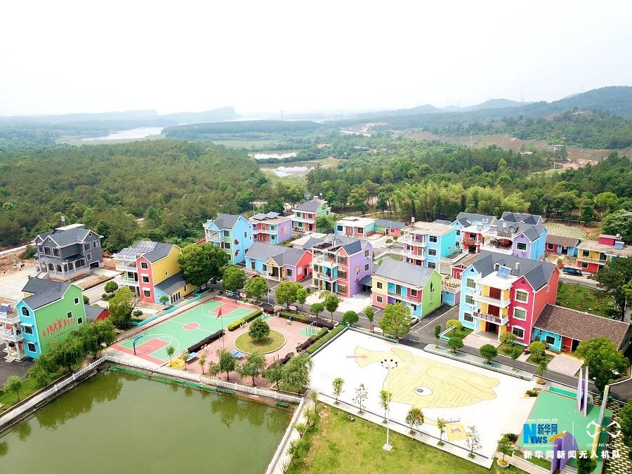 4月27日,航拍位于江西省横峰县姚家乡“好客王家”,七彩的房屋,青春多彩的壁画,走到村庄内,犹如进入童话世界。