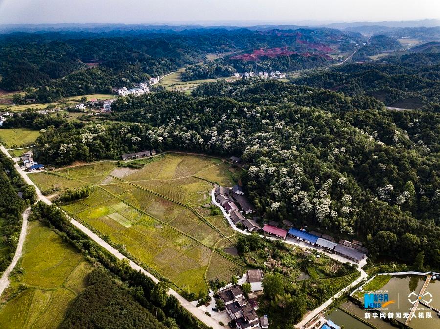 5月2日,航拍江西省宜丰县芳溪镇大丰水库野生泡桐林。临近夏季,该县大片泡桐花陆续绽放,雪花般点缀在绿树丛中,格外赏心悦目。
