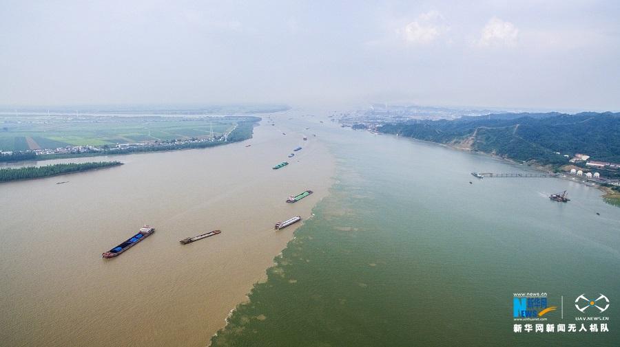 2018年8月1日 航拍鄱阳湖与长江交汇处江湖两色奇观。