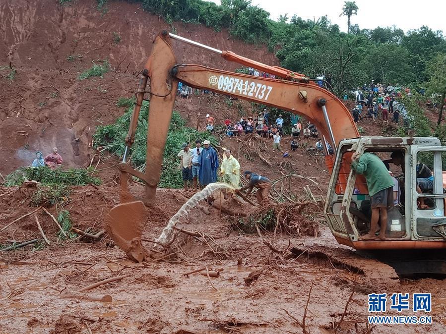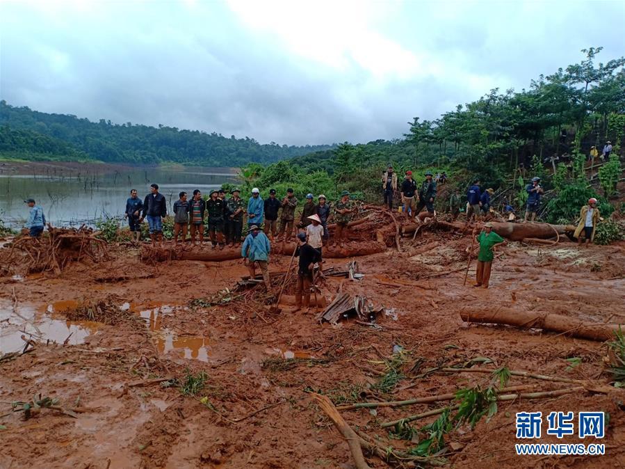 8月8日,在越南西原地区达农省,人们搜救山体滑坡被埋者。 越南中央预防自然灾害指导委员会9日发布消息说,越南西原地区近日遭遇强降雨,暴雨引发的洪水和山体滑坡已造成至少8人死亡。 新华社/越通社