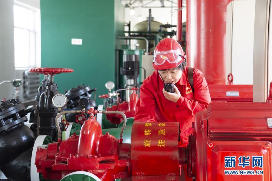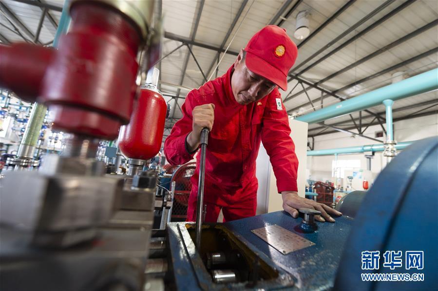 大庆油田第二采油厂的职工在厂房中进行巡检(9月27日摄)。 新华社发(谢剑飞 摄)