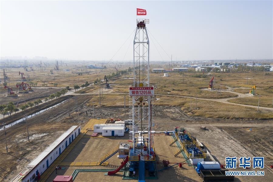 这是大庆油田1205钻井队的钻井井架(9月28日无人机拍摄)。新华社发(谢剑飞 摄)