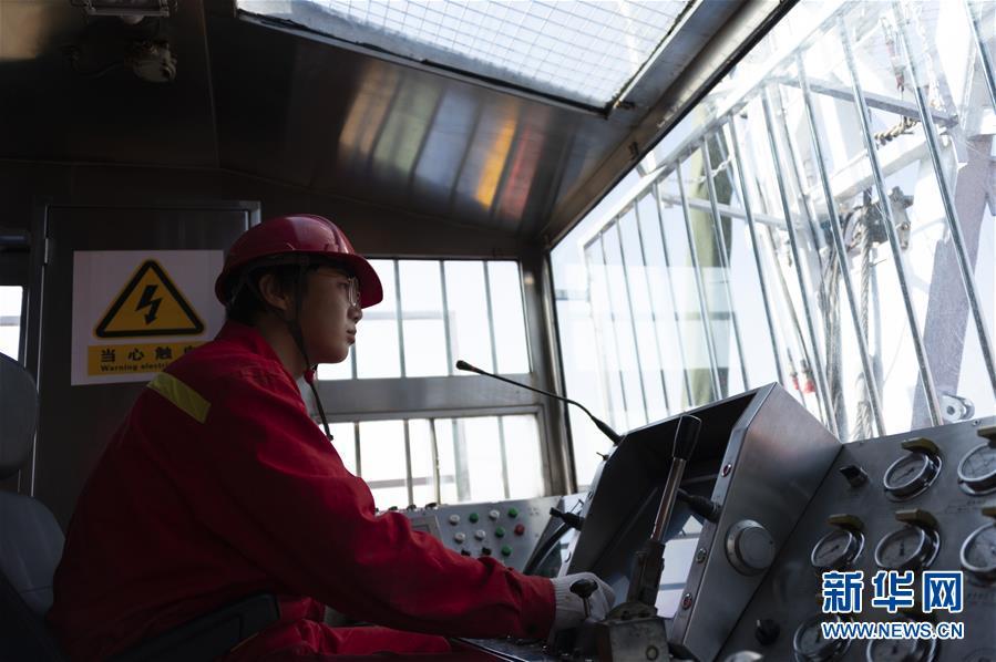 大庆油田1205钻井队的队员在司钻房中进行生产操作(9月28日摄)。 新华社发(谢剑飞 摄)