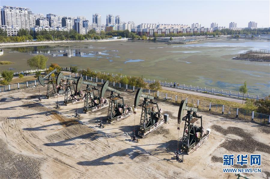 这是大庆油田第一采油厂第七油矿503采油队二号丛式井平台井组(9月28日摄)。 新华社发(谢剑飞 摄)