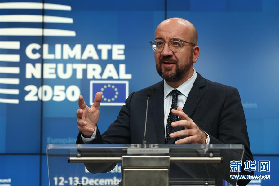 12月13日凌晨,欧洲理事会主席米歇尔在比利时布鲁塞尔欧盟总部的新闻发布会上发言。 新华社记者郑焕松摄