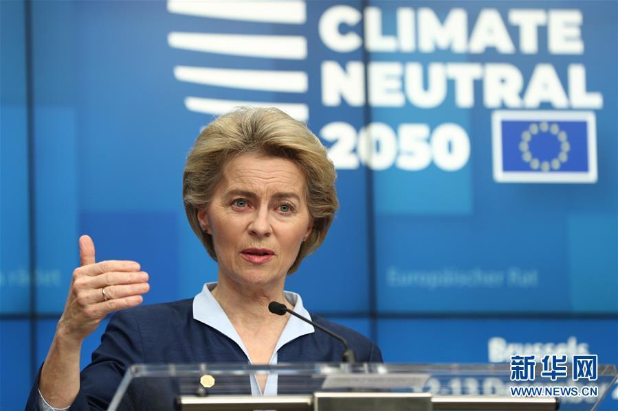 12月13日凌晨,欧盟委员会主席冯德莱恩在比利时布鲁塞尔欧盟总部的新闻发布会上发言。新华社记者郑焕松摄