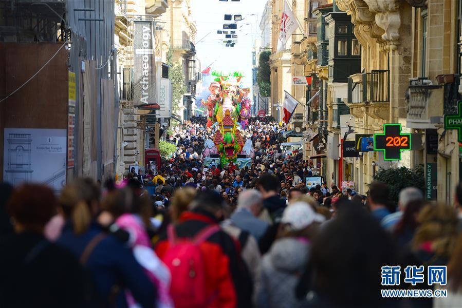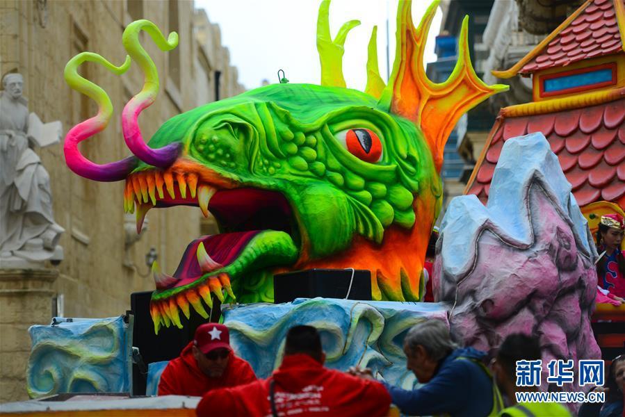 2月22日,在马耳他首都瓦莱塔,“美丽中国 文心雕龙”花车在狂欢节花车巡游活动上亮相。 当日,一年一度的马耳他狂欢节在首都瓦莱塔举行花车巡游活动。由马耳他中国文化中心与马耳他狂欢节组委会共同设计制作的“美丽中国 文心雕龙”花车在活动上亮相。 新华社发(乔纳森⋅博格 摄)