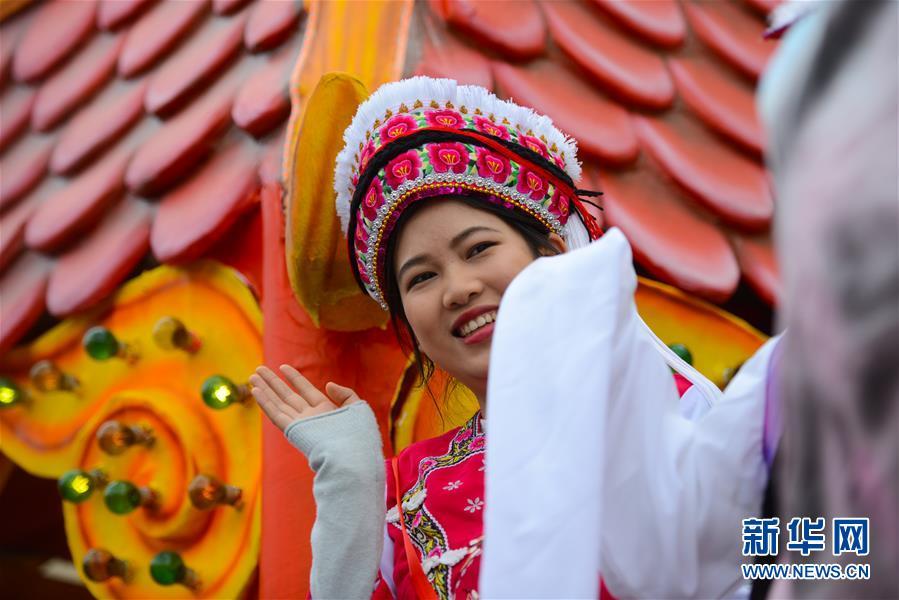 2月22日,在马耳他首都瓦莱塔举行的狂欢节花车巡游活动上,一名中国女孩在“美丽中国 文心雕龙”花车上表演。 当日,一年一度的马耳他狂欢节在首都瓦莱塔举行花车巡游活动。由马耳他中国文化中心与马耳他狂欢节组委会共同设计制作的“美丽中国 文心雕龙”花车在活动上亮相。 新华社发(乔纳森⋅博格 摄)