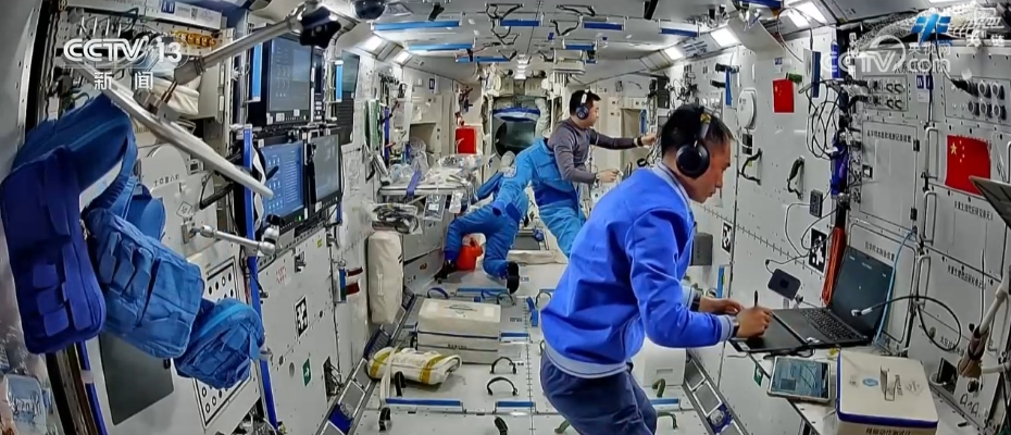 上周,乘组开展了站内环境监测,并对部分设备进行了维护与检测。完成了再生生保系统、乘员设备维护,湿度传感器备件加电测试,舱内设备噪声测量及降噪状态巡检等工作。