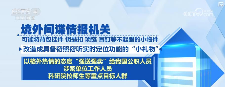 对于一些改装的礼品,也要格外注意。境外间谍情报机关可能将背包挂件、钥匙扣、项链、耳钉等不起眼的小物件改造成具备窃照窃听实时定位功能的“小礼物”,以格外热情的态度“强送强卖”给我国公职人员、涉密单位工作人员、科研院校师生等重点目标人群,妄图非法获取我国国家秘密和内部敏感信息。国家安全机关提示,境外出行,对行为可疑、异常热情的境外人员要保持高度警惕,若对方提出赠送纪念礼品等要求要多加防范,避免落入境外间谍情报机关精心布置的圈套。