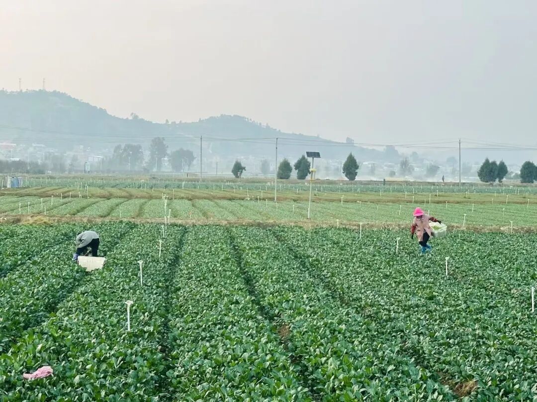 在云南省砚山县粤港澳大湾区“菜篮子”基地,菜农正在收割菜心。农民日报·中国农网记者 郭诗瑀 摄