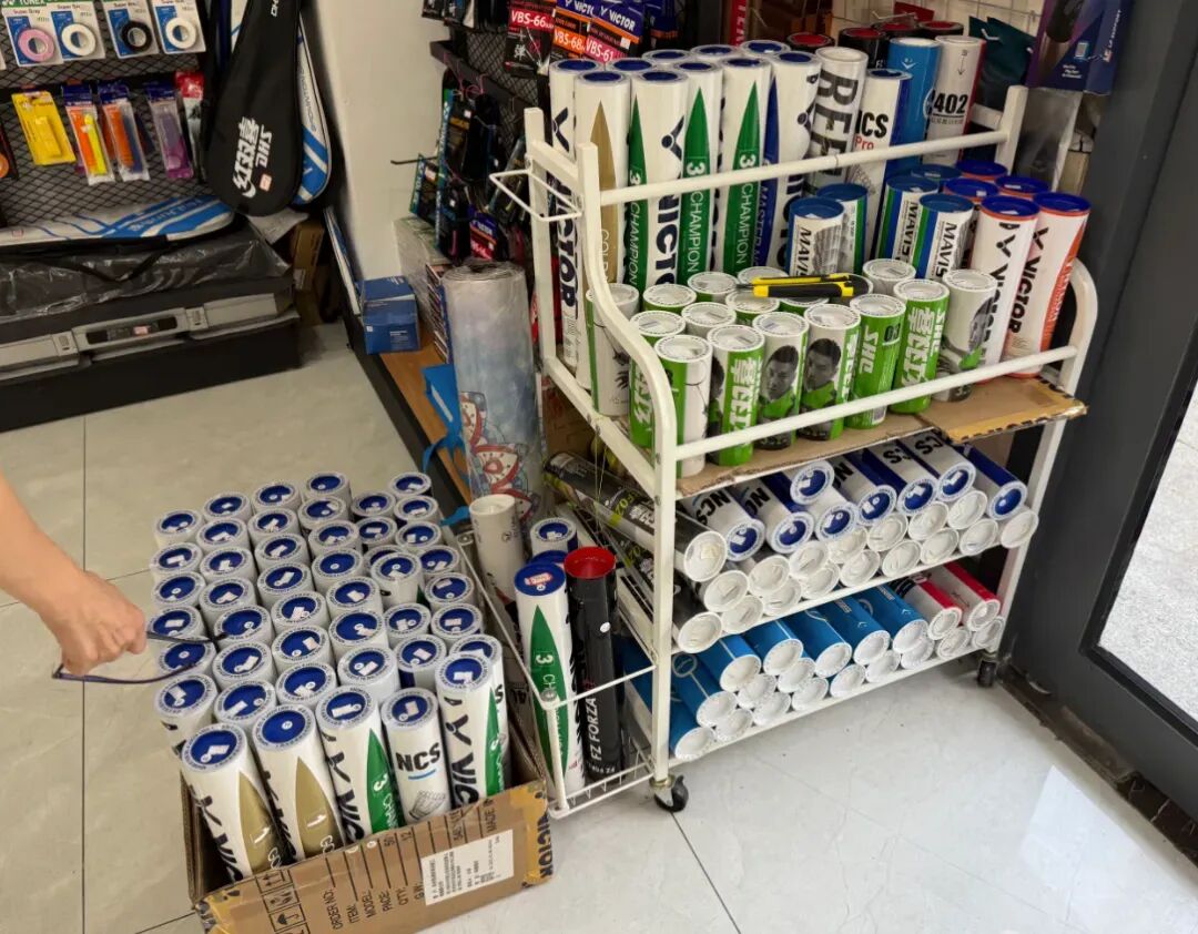 一家体育用品店里,威克多羽毛球的价格均价在150元上下,红双喜小筒羽毛球价格为35元/筒。