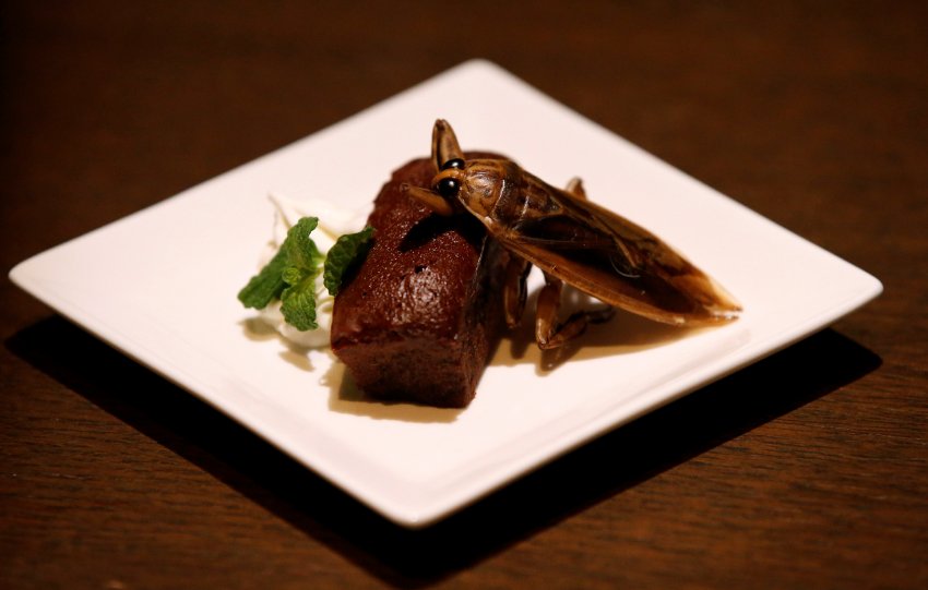 蟑螂配巧克力蛋糕:在东京吃这道甜点时还要配上几片新鲜薄荷叶。