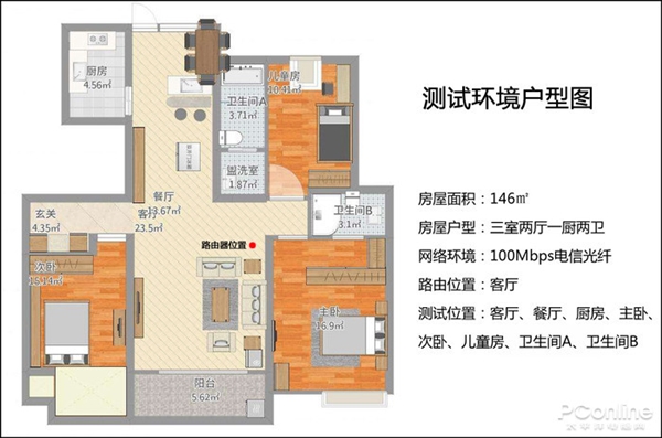 小编家里是146平方米的三室两厅,使用电信100兆宽带。
