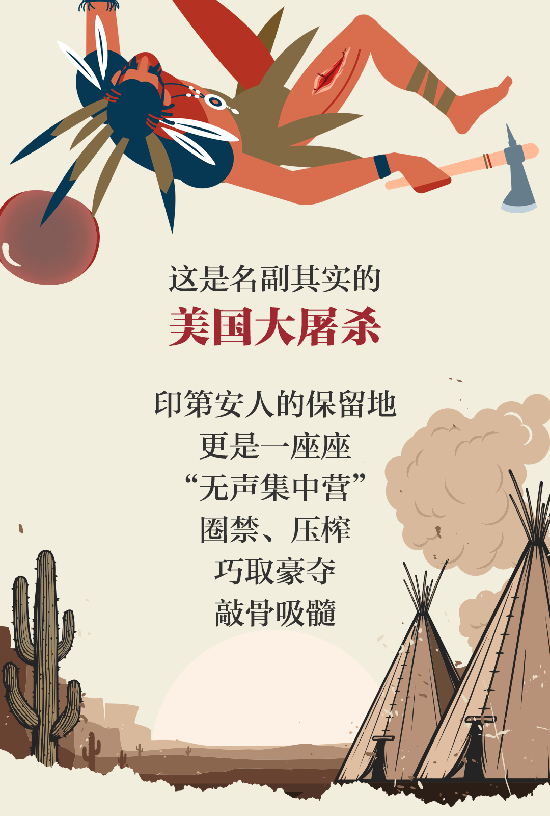 16世纪以来,西方殖民者大肆屠杀印第安人。原本超1000万的北美原住民,到19世纪末期凋零至20多万,这是名副其实的美国大屠杀,印第安人的保留地,更是一座座“无声集中营”——圈禁、压榨、巧取豪夺、敲骨吸髓。