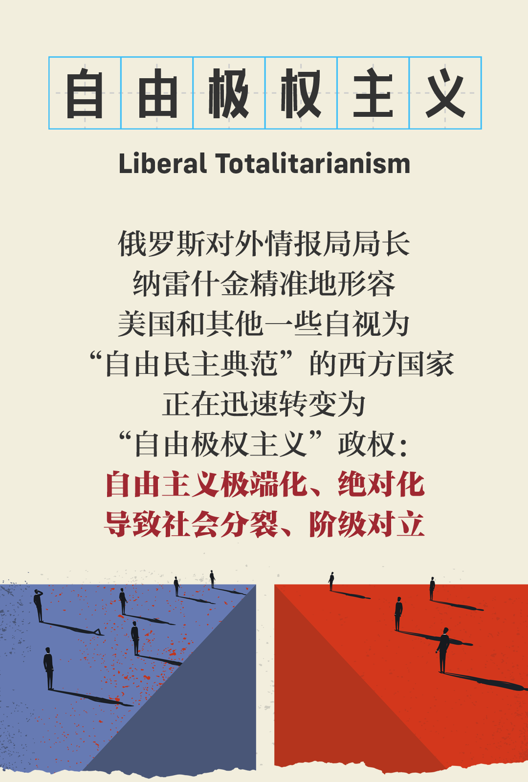 俄罗斯对外情报局局长纳雷什金精准地形容,美国和其他一些自视为“自由民主典范”的西方国家,正在迅速转变为“自由极权主义”政权:自由主义极端化、绝对化导致社会分裂、阶级对立。