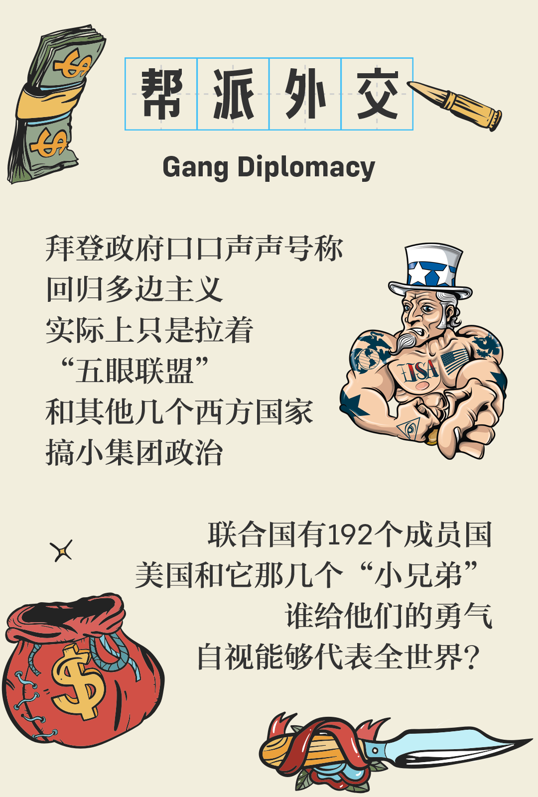 拜登政府口口声声号称回归多边主义,实际上只是拉着“五眼联盟”和其他几个西方国家,搞小集团政治。联合国有192个成员国,美国和它那几个“小兄弟”,谁给他们的勇气自视能够代表全世界?