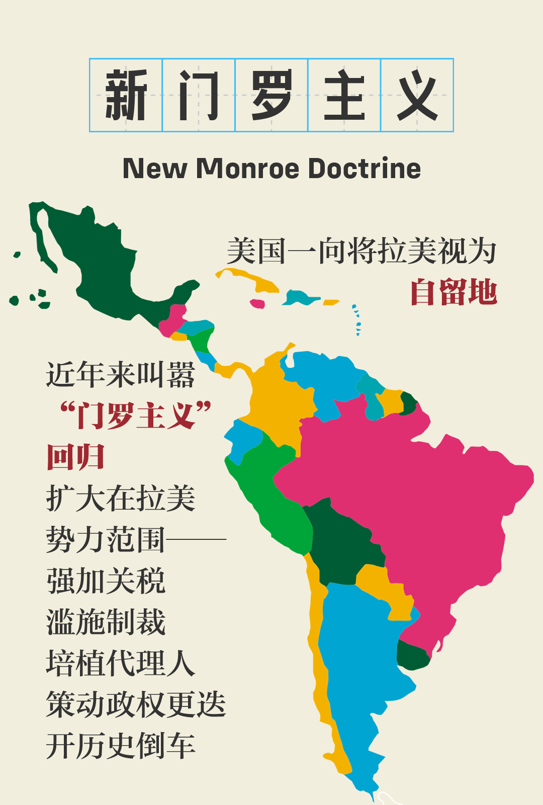 美国一向将拉美视为“自留地”,近年来叫嚣“门罗主义”回归,扩大在拉美势力范围,强加关税、滥施制裁、培植代理人、策动政权更迭,开历史的倒车。