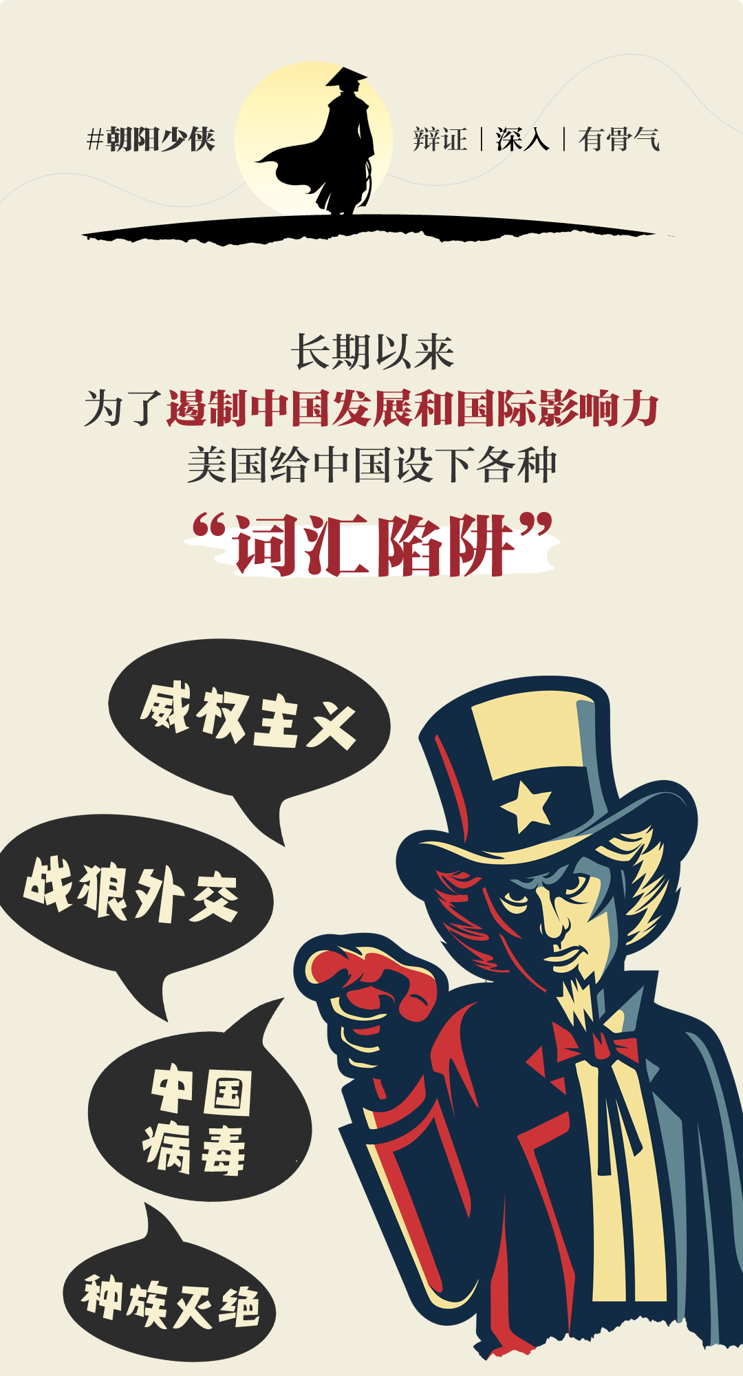 长期以来,为了遏制中国发展和国际影响力,美国给中国设下各种“词汇陷阱”,比如“威权主义”“战狼外交”“中国病毒”“种族灭绝”“强迫劳动”……美国妄想用这种阴招,给中国强行安上罪名。