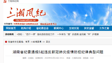 (原标题:湖南省纪委通报5起违反新冠肺炎疫情防控纪律典型问题)
