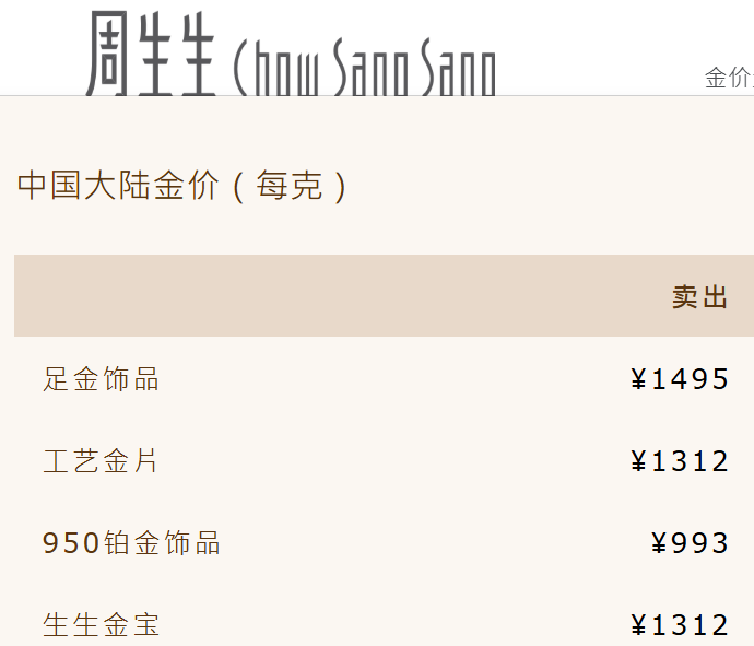 周生生足金饰品报1495元/克,较1月20日1454元/克涨41元/克。