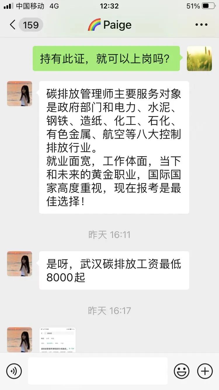 记者咨询网络上流行的碳排放管理师证,这位“老师”表示交钱报名后可“包过”,并马上发过来一张证书图片。“可以工作用,也可以兼职挂靠赚钱。就业面广、工作体面,当下和未来的黄金职业!武汉碳排放工资最低8000起。”