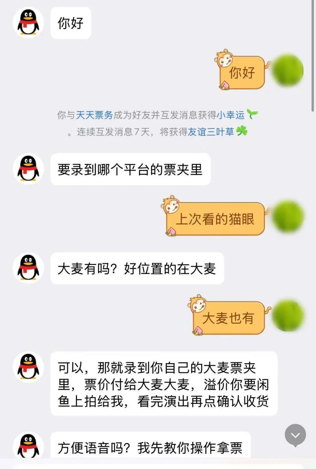 林先生在交易平台上找了一个卖家,卖家和他添加了好友,然后告诉他会协助他到“大麦”App上进行购票操作。