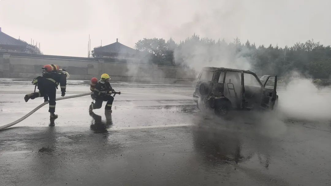 6月27日上午,怀柔区下起大雨,家住苏峪口村的李大爷正驾驶一辆四轮老年代步车行驶在路上。突然,李大爷听到车座下边发出异响并感到发热,70多岁的老人慌忙跳车逃生,没一会儿,车辆便燃起了熊熊大火。李大爷见状赶紧拨打119报警求助。