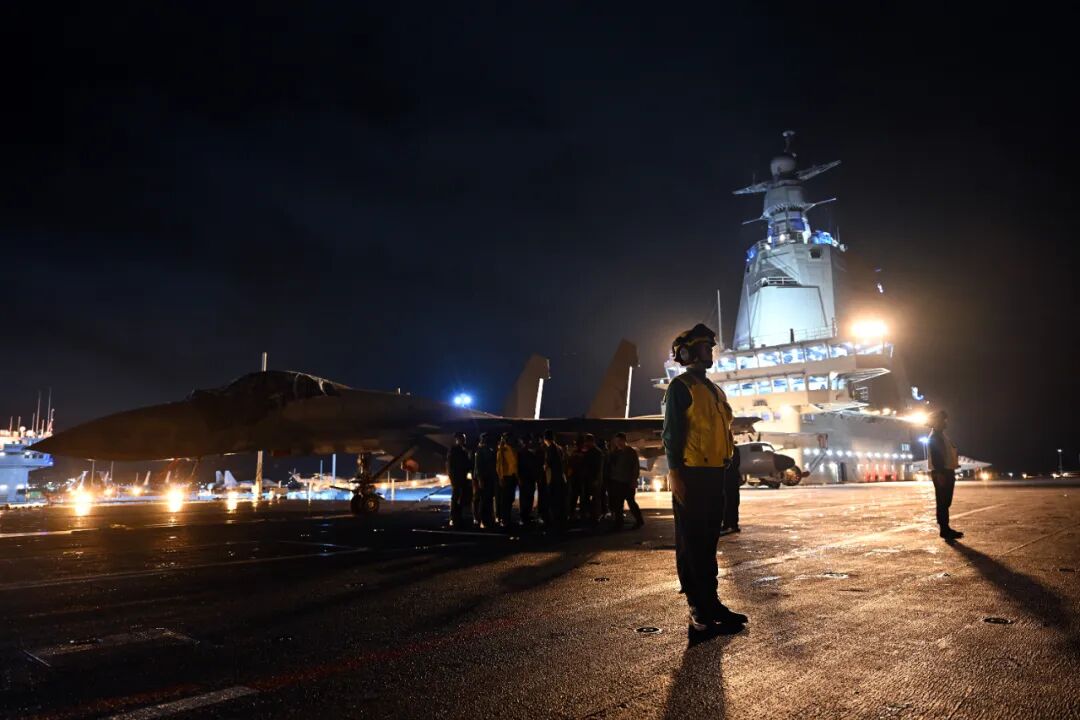 福建舰官兵在夜间训练。解放军报记者 穆瑞林 摄