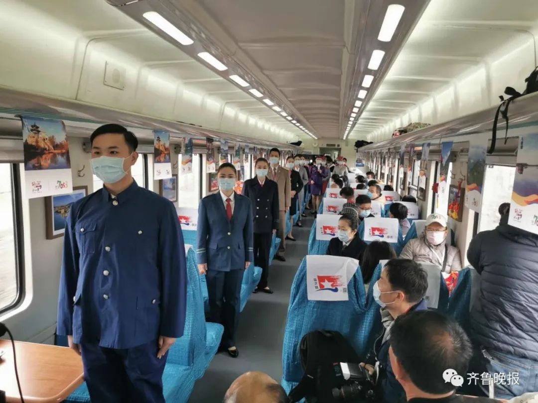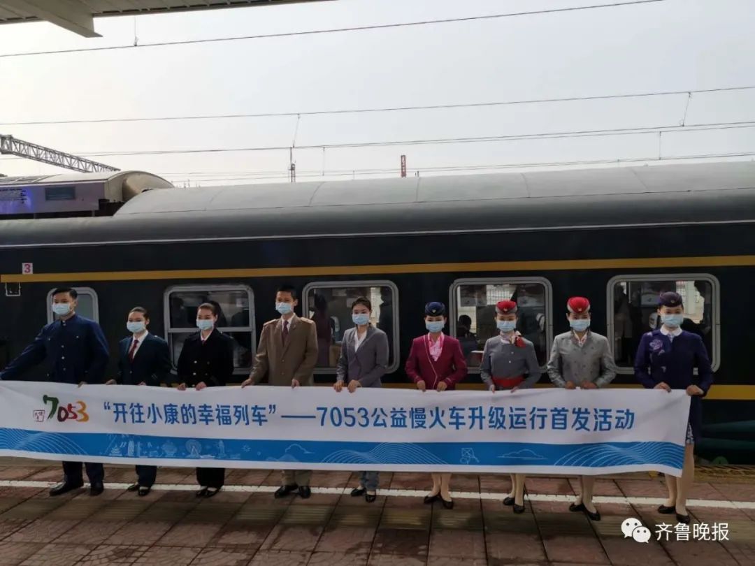 这是济南局集团公司7053次公益性“慢火车”全新升级后开出的首趟列车。
