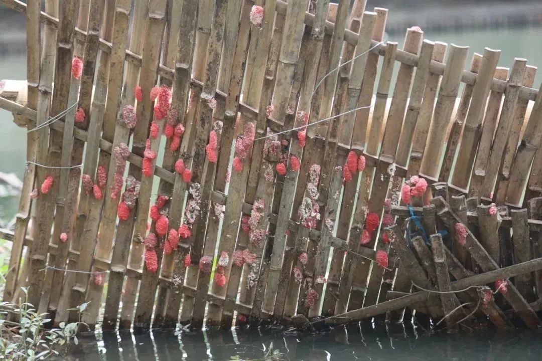 余女士回忆说,那天下午,路过村里的河道边,无意间看到了一团团粉色的不明物体紧贴在河堤上。“虽然我就是九龙村人,但是以前不怎么经过河边,所以也是第一次见。”