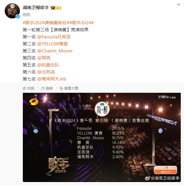 《歌手2024》第三期排名: