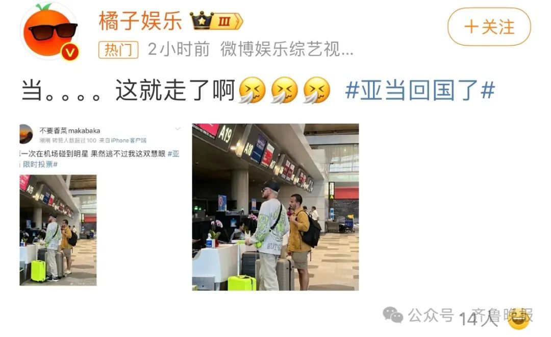 今天一早,网友遇到袭榜歌手亚当已经回国。