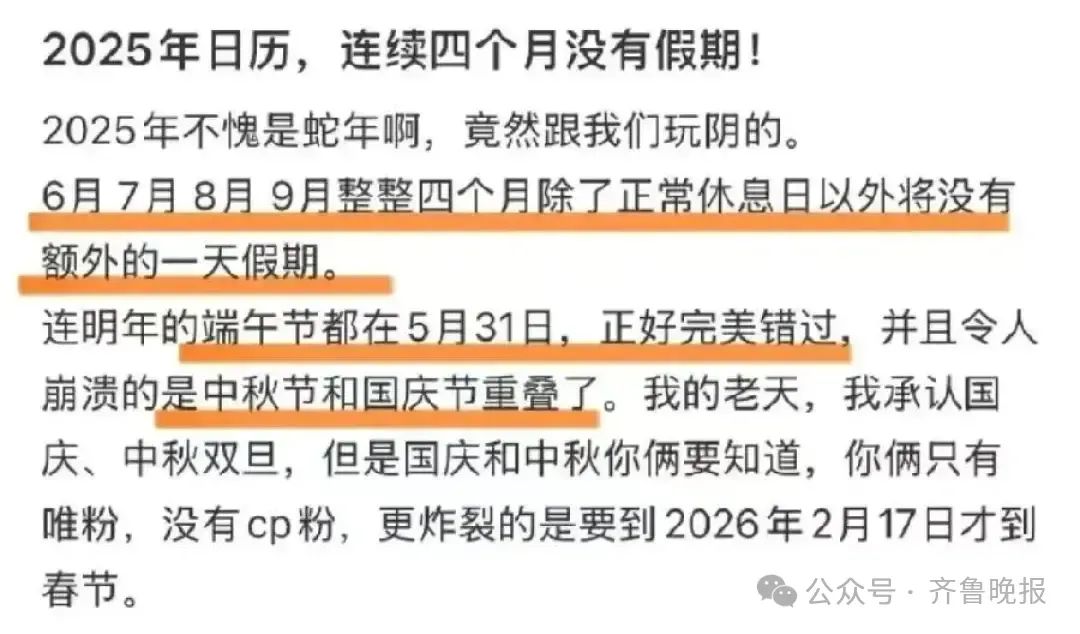 2025年连续四个月,没有任何法定假期!网友:天塌了