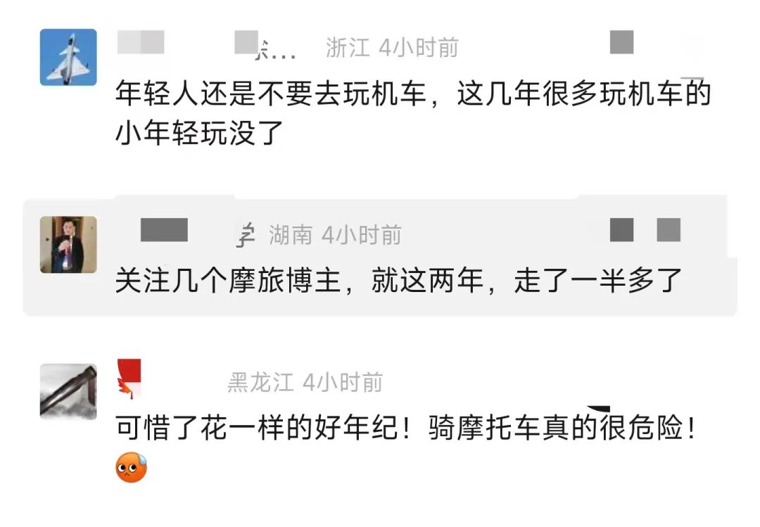 有媒体不完全统计发现,2022年10月到2023年4月,仅半年时间已有“安安”“小娇妻”“小鱼爱吃鱼”、庄慕卿、马若松5名机车网红离世,其中最小的16岁,最大的也年仅23岁。在如此花一般的年纪,却因为寻求刺激失去了人生更多的可能性,这不禁让人扼腕叹息。