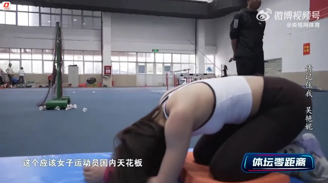 旁边教练称,吴艳妮的这个动作在国内属于天花板级别。