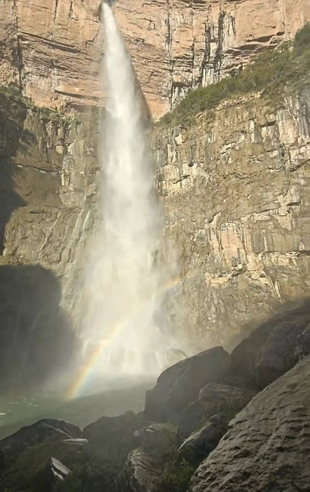 记者了解到,老龙口瀑布位于南太行,瀑布上方是山西省陵川县抱犊村,下方是河南省辉县八里沟凤凰大峡谷,一条瀑布串起两省,接近300米落差让大瀑布蔚为壮观,也因此吸引了许多驴友前来徒步。