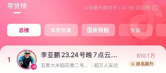 李亚鹏直播10分钟冲上第一!多款产品秒光,销售额远超“与辉同行”,一再提醒大家“理性购物”