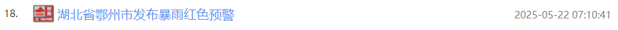5月22日8时51分,据@湖北气象 最新消息,目前省内较强回波位于十堰、荆门、仙桃、荆州、襄阳、鄂州、黄冈等地,出行的公众注意避开积水路段,小心慢行!